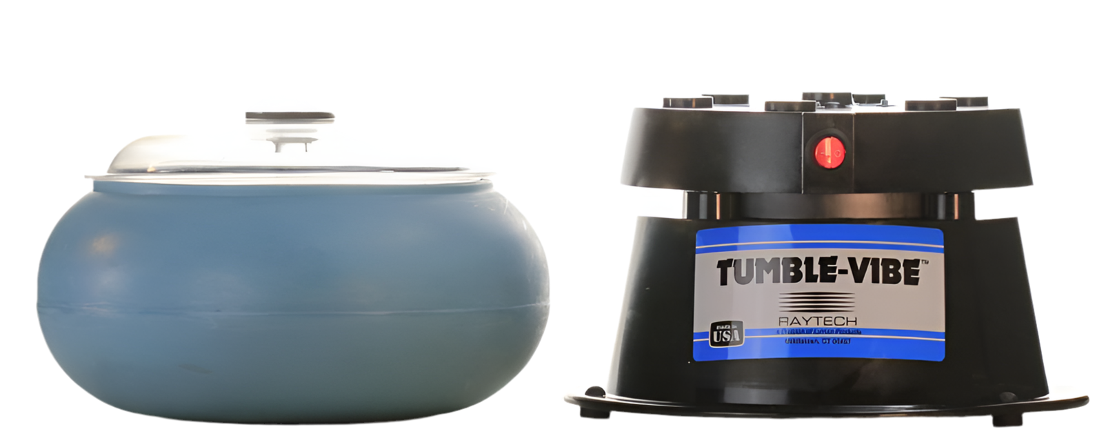 Si versano le pietre, un po' di polvere abrasiva e un po' d'acqua e la macchina macina autonomamente. Dopo alcune grane abrasive, viene finalmente lucidato. A questo scopo si consiglia un contenitore separato, che viene poi utilizzato solo per la lucidatura.