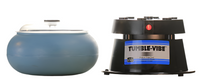 Questo tipo di macchina funziona molto più velocemente delle tradizionali "molatrici a tamburo" perché la vibrazione permanente e l'attrito delle pietre una contro l'altra rimuove più materiale in un tempo più breve.