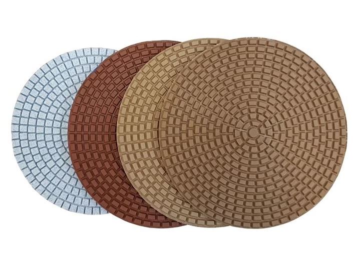 Set besteht aus einem aggressiven Grobschliffpad QU 30, Ø 180 mm zum Planen des Steines nach dem Schnitt. Die Besonderheit daran ist das schöne Schliffbild. Pad Nr. 2 für Grundschliff. Pad Nr. 3 Feinschliff. Pad Nr. 4 Vorpolitur (Politur). Bei Bedarf wird noch mit Ceriumoxyd auf Filz bei langsamer Drehzahl poliert.