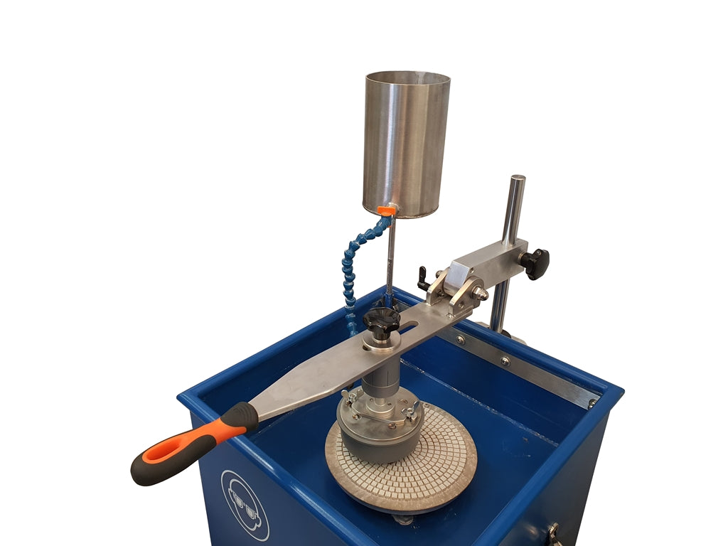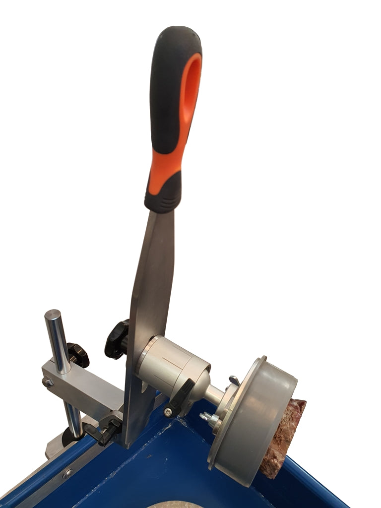 Mit Hilfe des Schleifhebels (Schleifvorrichtung) ist es möglich, Steine (speziell Achate) einfachst und schnell zu schleifen. Durch die Vorrichtung wird der Stein in einer gleichmäßigen, kreisförmigen Bewegung über die Schleifscheibe geführt. Dadurch erzielt man ein sauberes Schliffbild. Die Position des Steines auf der Schleifscheibe lässt sich einfach einstellen. Durch das Eigengewicht der Vorrichtung wird der Stein mit gleichmäßigem Druck auf die Scheibe angepresst. Der unangenehme händische Anpressdruck entfällt durch diese Vorrichtung.
